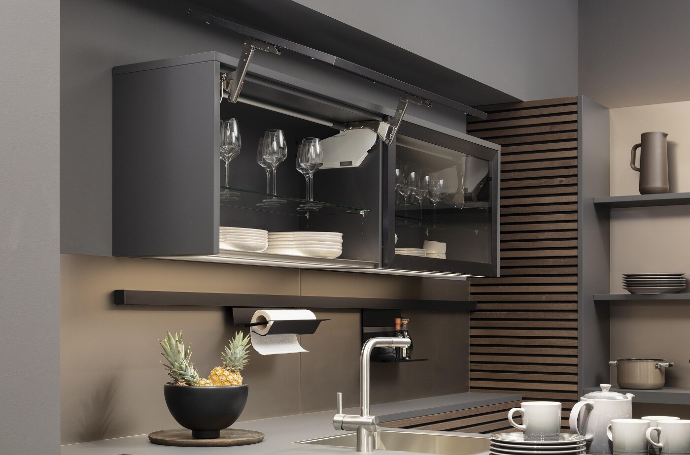 Bei Schränken oder Regalen, die über der Arbeitsfläche angebracht sind, sind Lichtbandsysteme für Leuchtstofflampen direkt unter den Hängeschränken ideal. Möglich sind Spots genauso wie Systeme zur großflächigen Beleuchtung. Angeboten werden auch Hängeschränke mit integrierter Beleuchtung über einem verglasten Boden, sodass der Küchenschrank zusätzlich von innen erstrahlt. Viele Lösungen lassen sich auch nachträglich noch installieren: Fragen Sie uns!